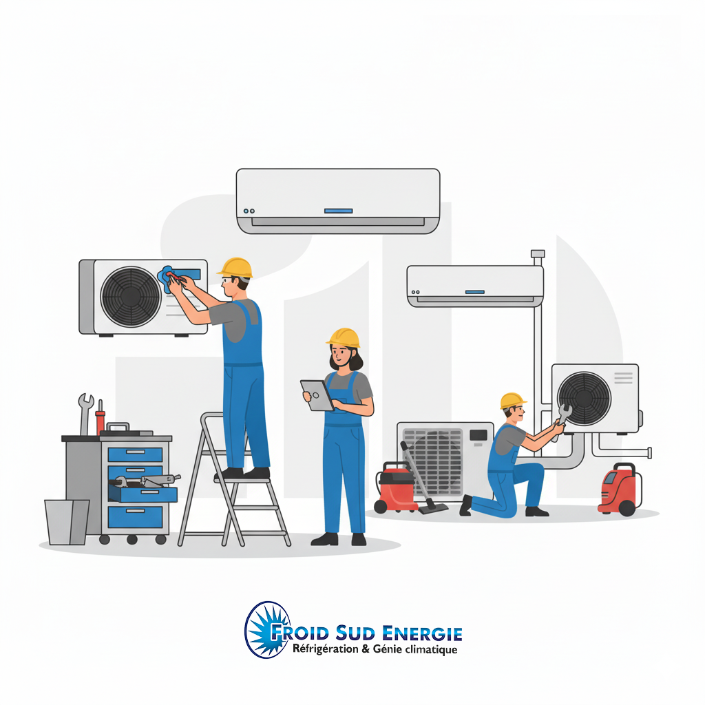 Nos techniciens vous proposent leurs services pour un ensemble de prestations haut de gamme étendues avec plusieurs options possibles . L’entreprise Froid Sud Energie attache une importance toute particulière en matière de compétences et de formations concernant son personnel. Tous nos techniciens ont été formés pour la maintenance, l'entretien et le nettoyage approfondis de systèmes de chauffage et de climatisation .L'ensemble de nos frigoristes sont titulaires des attestations obligatoires et réglementaires dans le cadre de cette activité. Nos offres d'entretien et de maintenance sont structurées en trois formules distinctes, chacune adaptée à des besoins spécifiques pour garantir la performance et la durabilité de vos systèmes de climatisation.